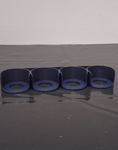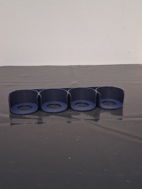 The rack is composed of four circular cradles joined together in a continuous, serpentine form. Each holder has: