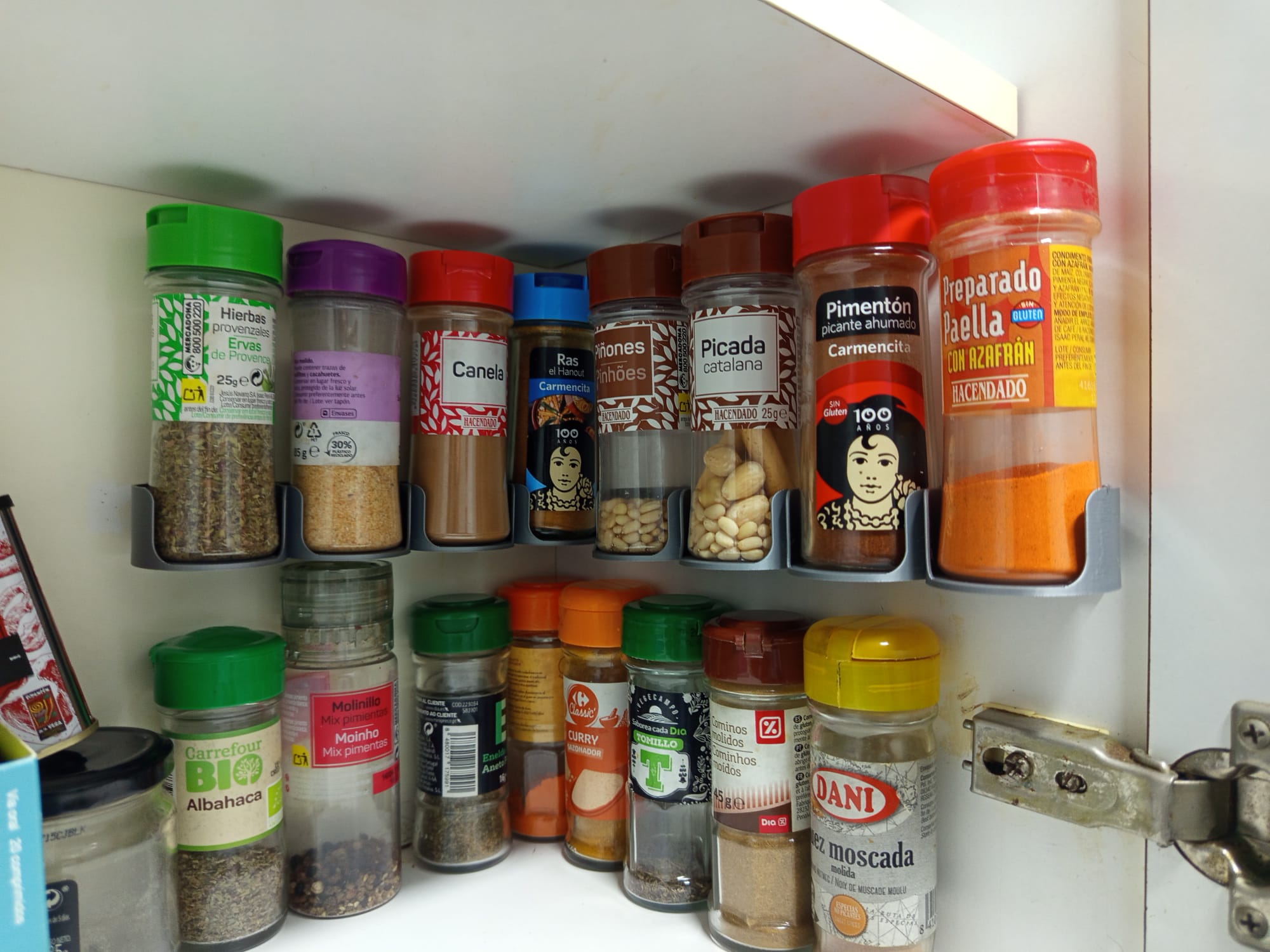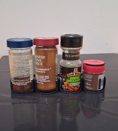 - A cutout or window on the front face of each holder, creating an oval opening that allows you to see the spice jar labels and easily identify contents